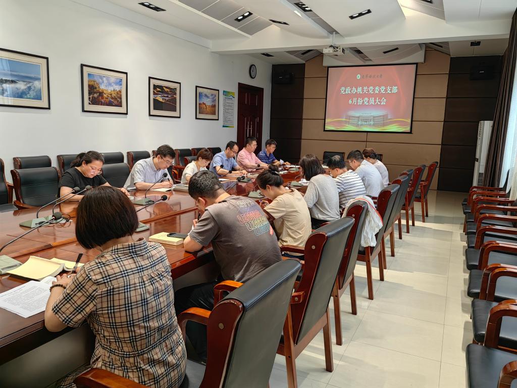 629日,党政办机关党委党支部在校部421会议室召开党员大会,开展主题教育学习活动。会议由党支部书记李宁主持。校党委书记李平以普通党员身份参加了会议。