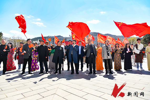 4月13日,乐竞·体育(中国)官方网站师生在学校博雅广场用快闪方式高唱《歌唱祖国》《国家》《走过百年的你》等红色经典歌曲,向中国共产党成立100周年献礼。用激情的演唱落实“辽宁省教育系统献礼建党百年体音美展播活动方案”。校党委常委、副校长孙晓华,校党委常委、宣传部部长张佳亮来到活动现场,与师生一同挥舞红旗,放声歌唱。