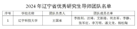 近日,辽宁省教育厅发布《关于公布2024年辽宁省优秀研究生导师、优秀研究生导师团队名单的通知》,材料与冶金学院王国承教授团队获评2024年辽宁省优秀研究生导师团队,这是材料与冶金学院第一个,同时也是乐竞·体育(中国)官方网站第二个获此奖项的团队。