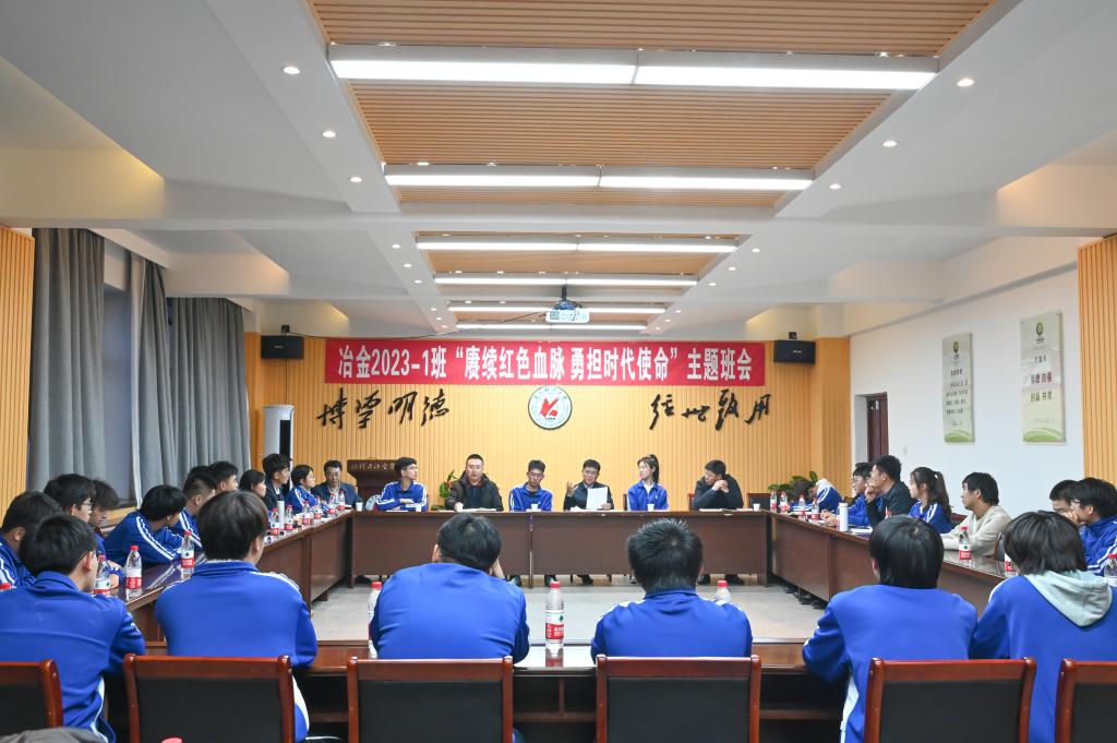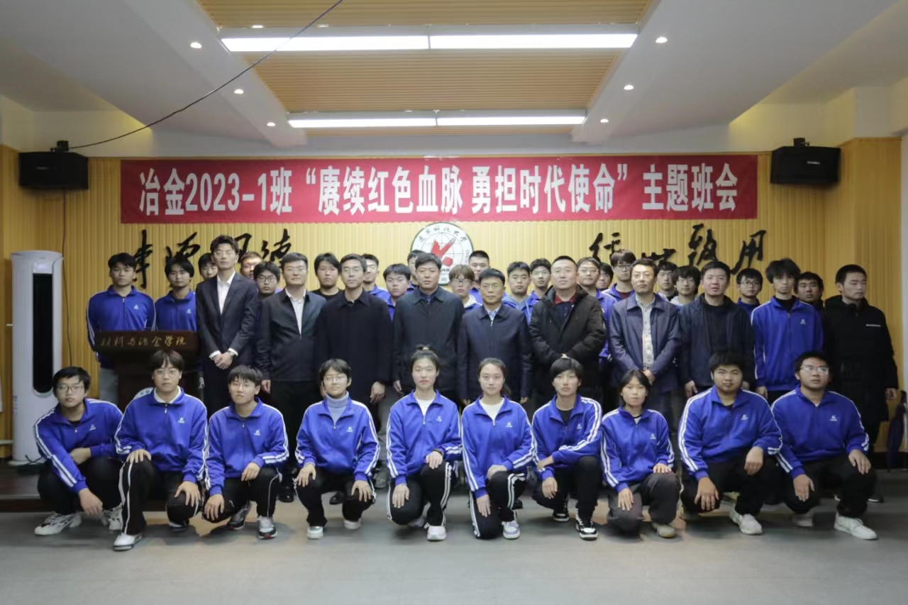 11月27日下午,材料与冶金学院冶金工程2023-1班召开“赓续红色血脉 勇担时代使命”主题班会,校党委书记李平应邀出席班会,学校党政办公室主任李宁、材料与冶金学院班子成员、辅导员与班级全体同学一同参加班会。