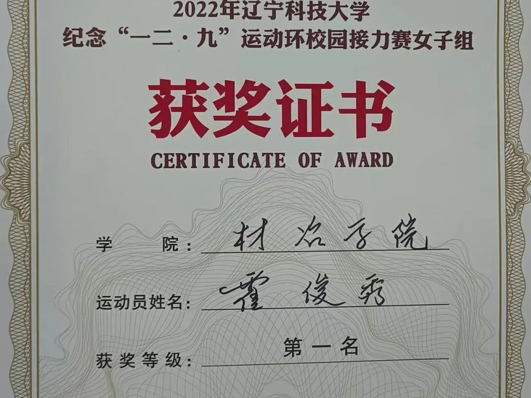 我是一名大二学生,来到学校,学校给了我很多显示自己特长的机会,在大一上半年参加129环校园接力比赛,跟随材冶院体育部积极训练, 尽自己最大努力为材冶院争光,也从训练中学到了很多,提升了很多,最后在129环校园接力比赛中获得第一名的奖项。大一下半年参加校51届运动会,在训练期间不怠慢,听取建议,积极改进进步,在运动会中也尽最大努力获得了800米第一名400米第二名,10×400米接力第一名的好成绩。