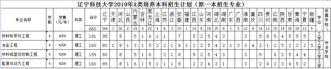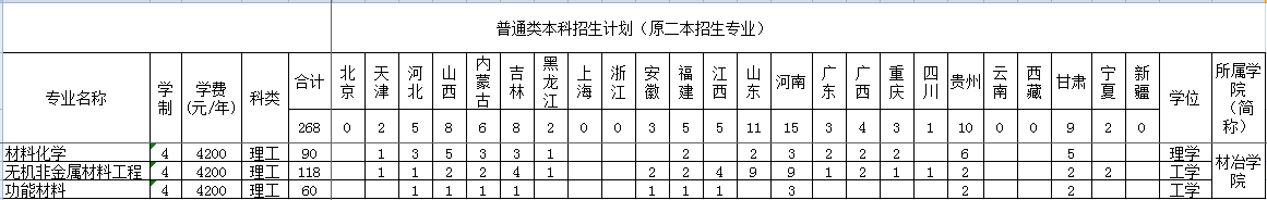 2019年材冶学院招生计划