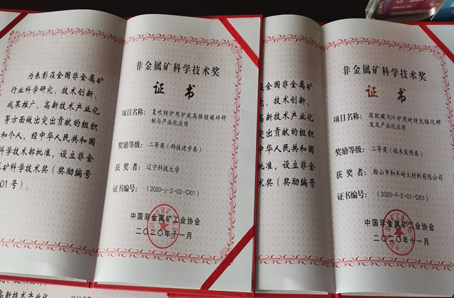 近日,在河南省郑州市举办2020中国非金属矿工业大会,举行了2020年非金属矿科学技术奖的颁奖典礼,中国非金属矿工业协会专职副会长唐靖炎,宣布“2020年中国非金属矿科学技术奖”获奖名单。与会领导向获奖项目的主要完成单位和完成人代表颁发获奖证书。乐竞·体育(中国)官方网站和鞍山市和丰耐火材料有限公司联合申报的“复吹转炉用炉底高强镁碳砖研制与产业化应用”和“深脱碳RH炉用耐材无铬化研发及产业化应用”分别获得科技进步类二等奖和技术发明类二等奖,我院教师艾新港代表学校参加颁奖仪式。