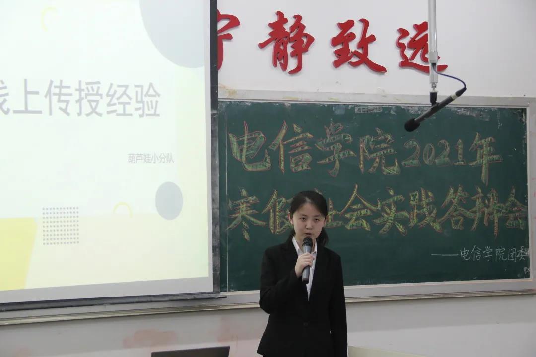 3月26日晚,电信学院于博闻楼九合组织开展主题为“把我的大学带回母校”寒假社会实践答辩会。此次答辩会由学生骨干张育玮主持,团委书记孙倩及2020级学生代表参加。