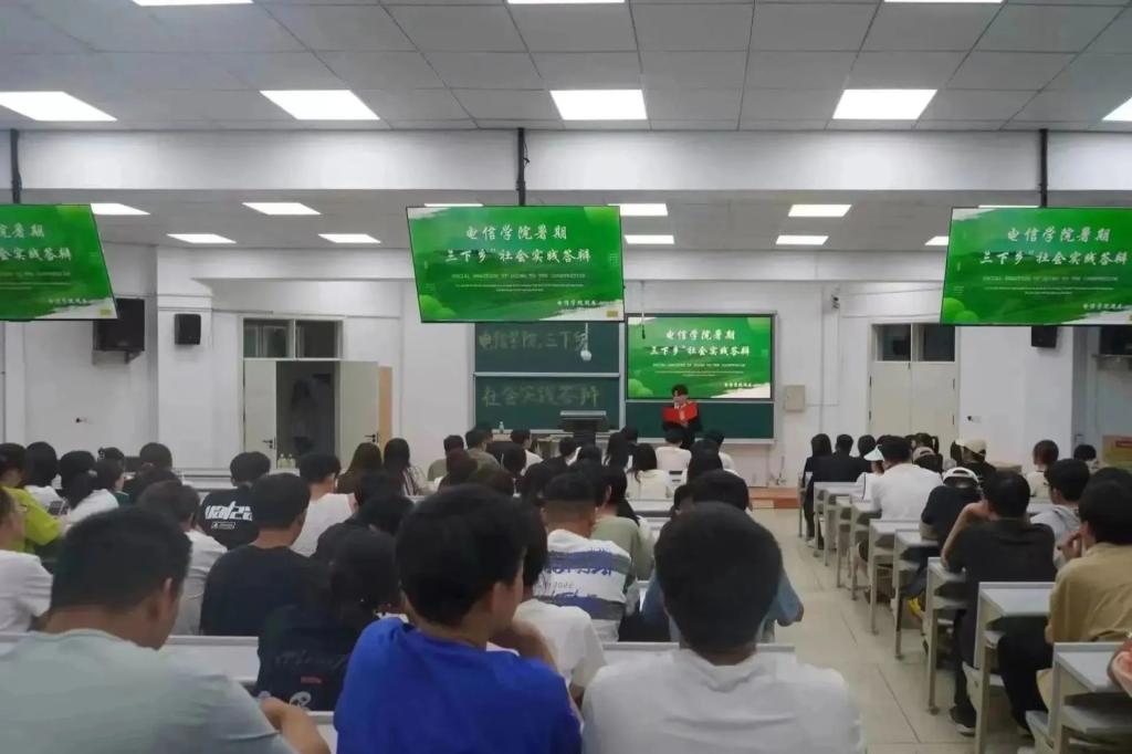 9月12日,电信学院2023年暑期三下乡社会实践活动决赛答辩会在博闻楼一合教室举行,本次答辩会对暑假社会实践团队完成情况进行验收,共有10支队伍参加答辩。本次活动由电信学院学生骨干郜焮喆主持,学院团委副书记刘洋及学生代表出席。
