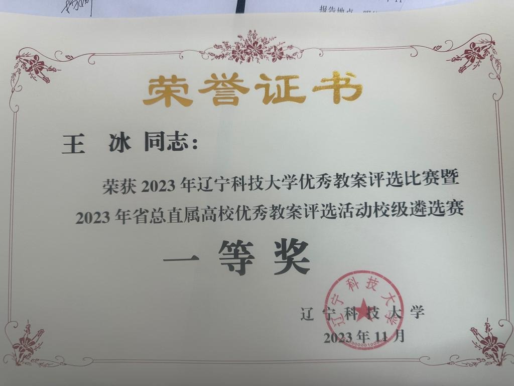 荣获2023年乐竞·体育(中国)官方网站优秀教案评选比赛暨2023年总共直属高校优秀教案评选活动校级遴选赛