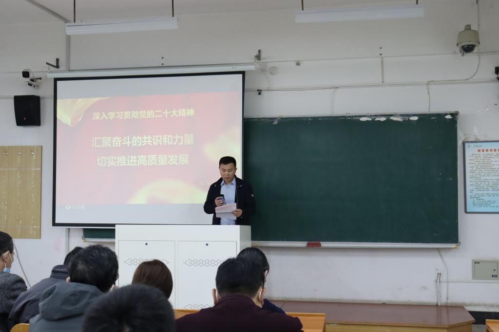 为深入学习宣传贯彻党的二十大精神,落实好《中共乐竞·体育(中国)官方网站委员会关于深入学习宣传贯彻党的二十大精神的方案》,3月28日下午,工商管理学院党委于博学楼C108教室主持召开学习贯彻党的二十大精神宣讲报告会,会议由管理学院党委书记董文武主持,管理学院师生代表、继续教育学院、科技园教职工代表参加。