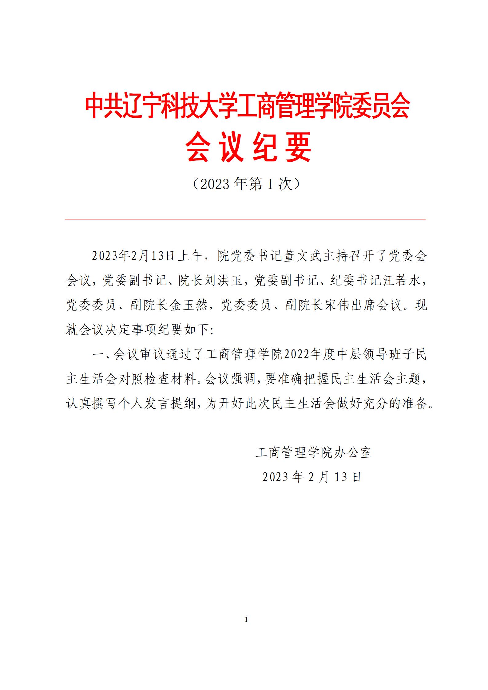 中共乐竞·体育(中国)官方网站工商管理学院委员会会议纪要(2023年第1次)