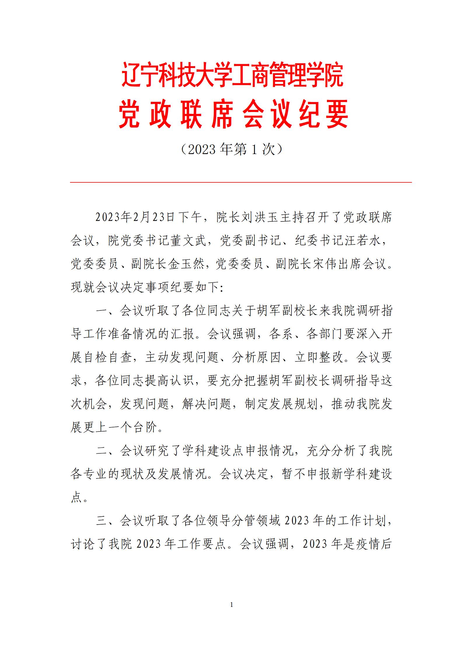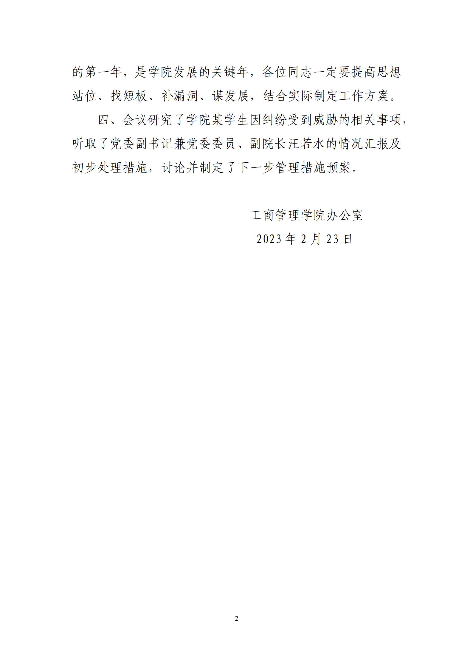 乐竞·体育(中国)官方网站工商管理学院党政联席会议纪要(2023年第1次)