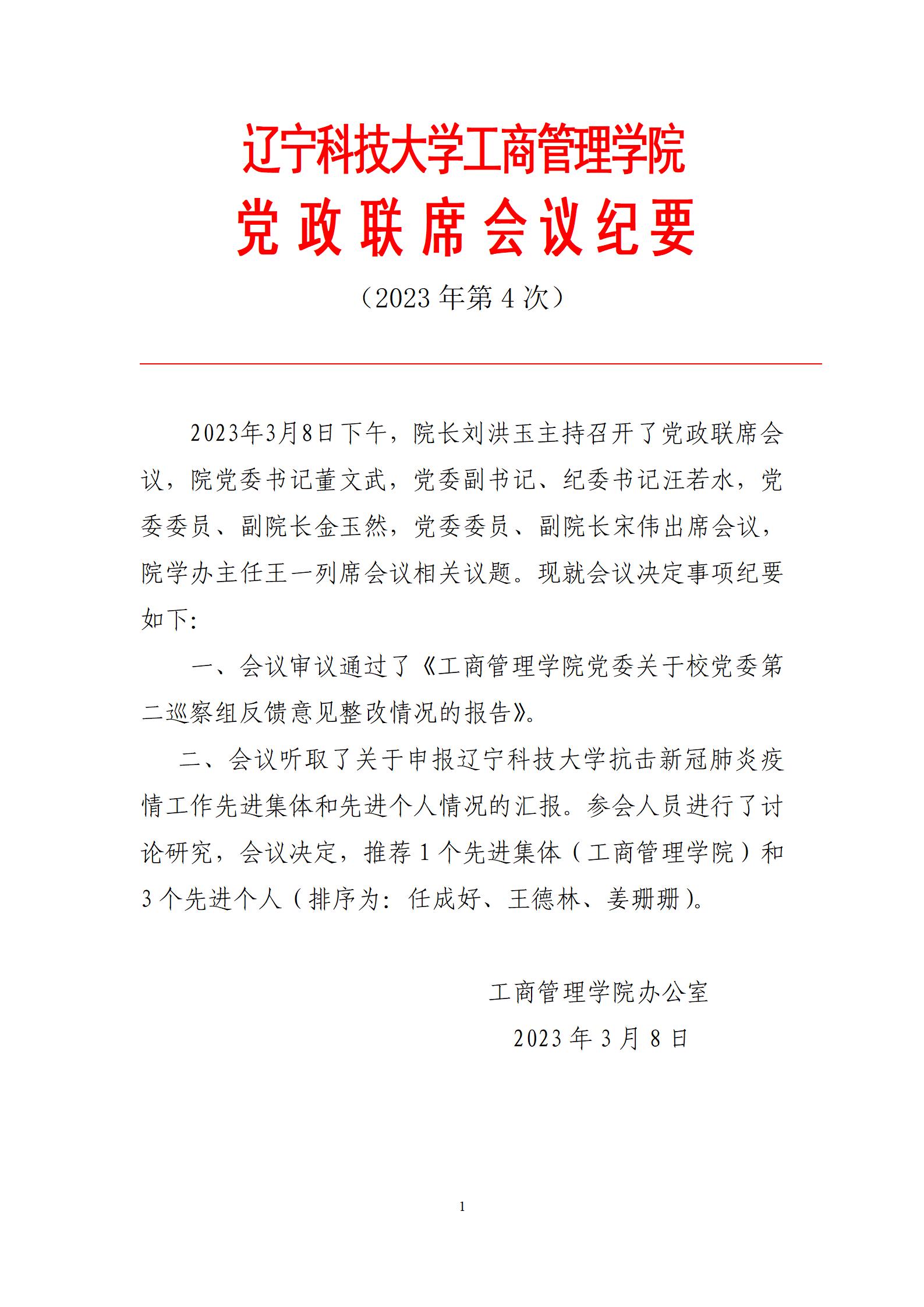 乐竞·体育(中国)官方网站工商管理学院党政联席会议纪要(2023年第4次)