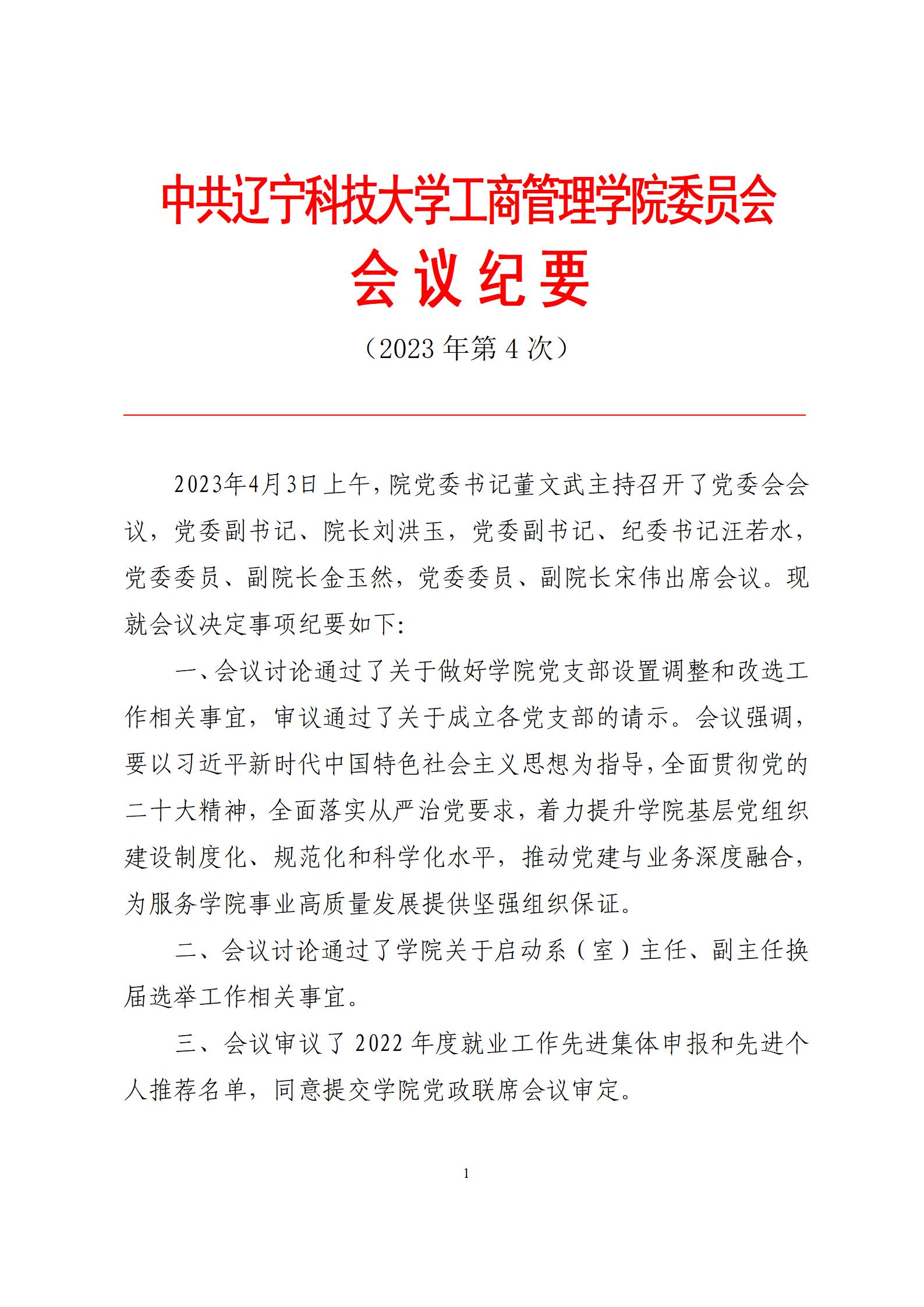 中共乐竞·体育(中国)官方网站工商管理学院委员会会议纪要(2023年第4次)