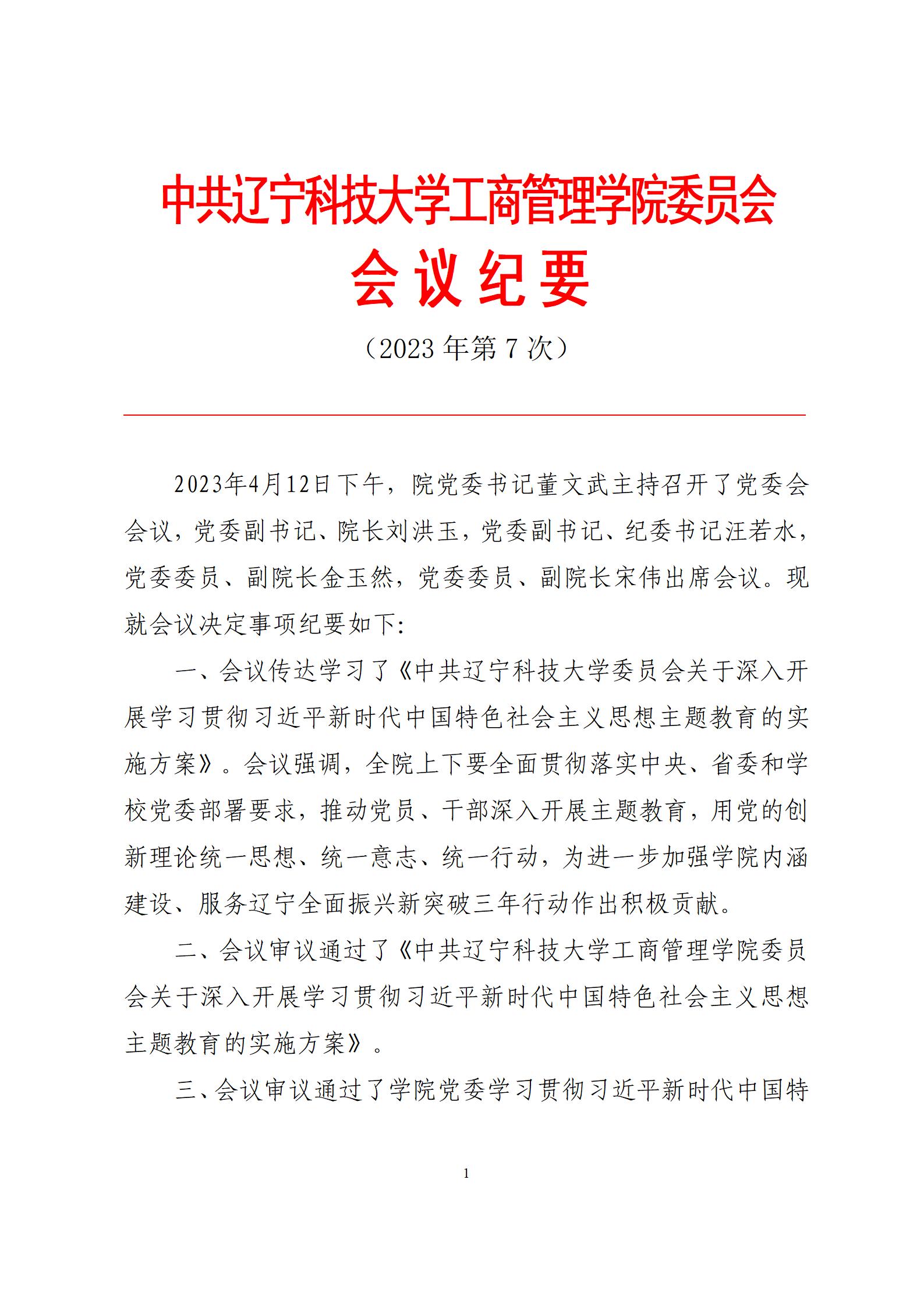 中共乐竞·体育(中国)官方网站工商管理学院委员会会议纪要(2023年第7次)