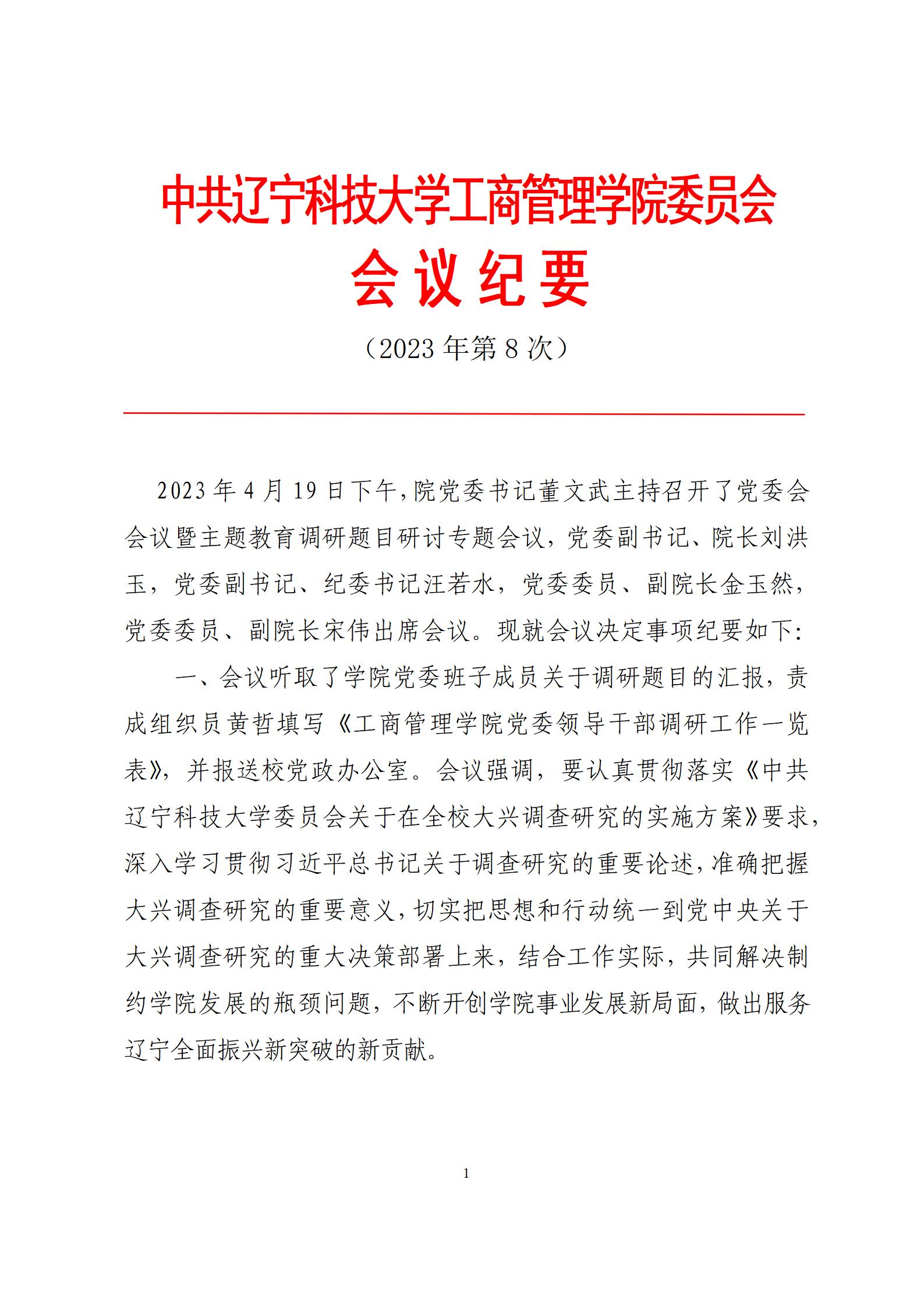 中共乐竞·体育(中国)官方网站工商管理学院委员会会议纪要(2023年第8次)