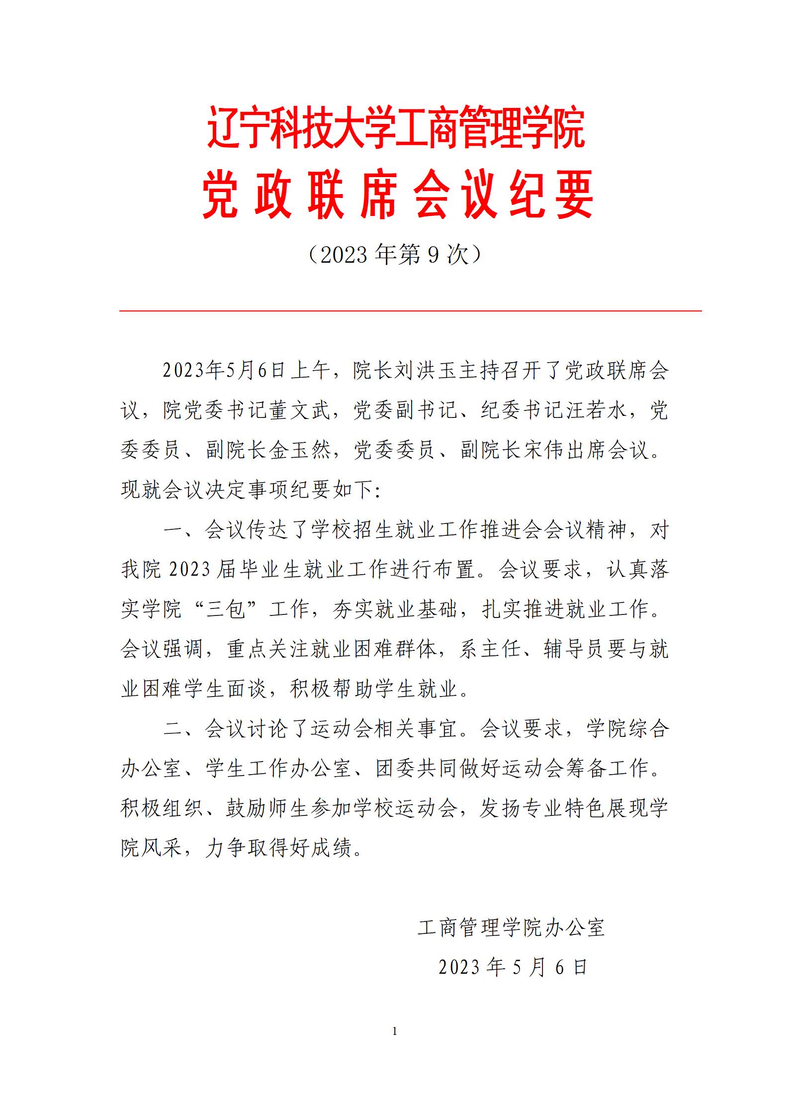 乐竞·体育(中国)官方网站工商管理学院党政联席会议纪要(2023年第9次)