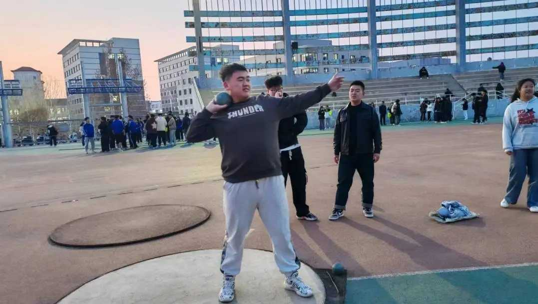 天空依旧很蓝,阳光依旧很暖。铅球在你们手中闪着光芒,你们默默挺直臂膀微曲,一道弧浅留在青春的上空。加油,铅球健儿们,绽放属于你们的光彩。