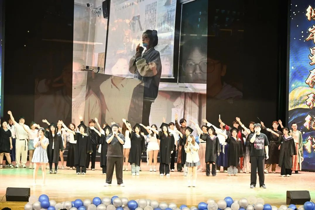 毕业晚会以《初见·年华》《成长·岁月》《飞扬·青春》三大篇章,如诗般勾勒学子四年成长轨迹。学院领导以“敢教日月换新天”的豪情与“千锤万凿出深山”的坚韧,寄语毕业生,愿他们以责任为基、担当为梁奔赴远方。