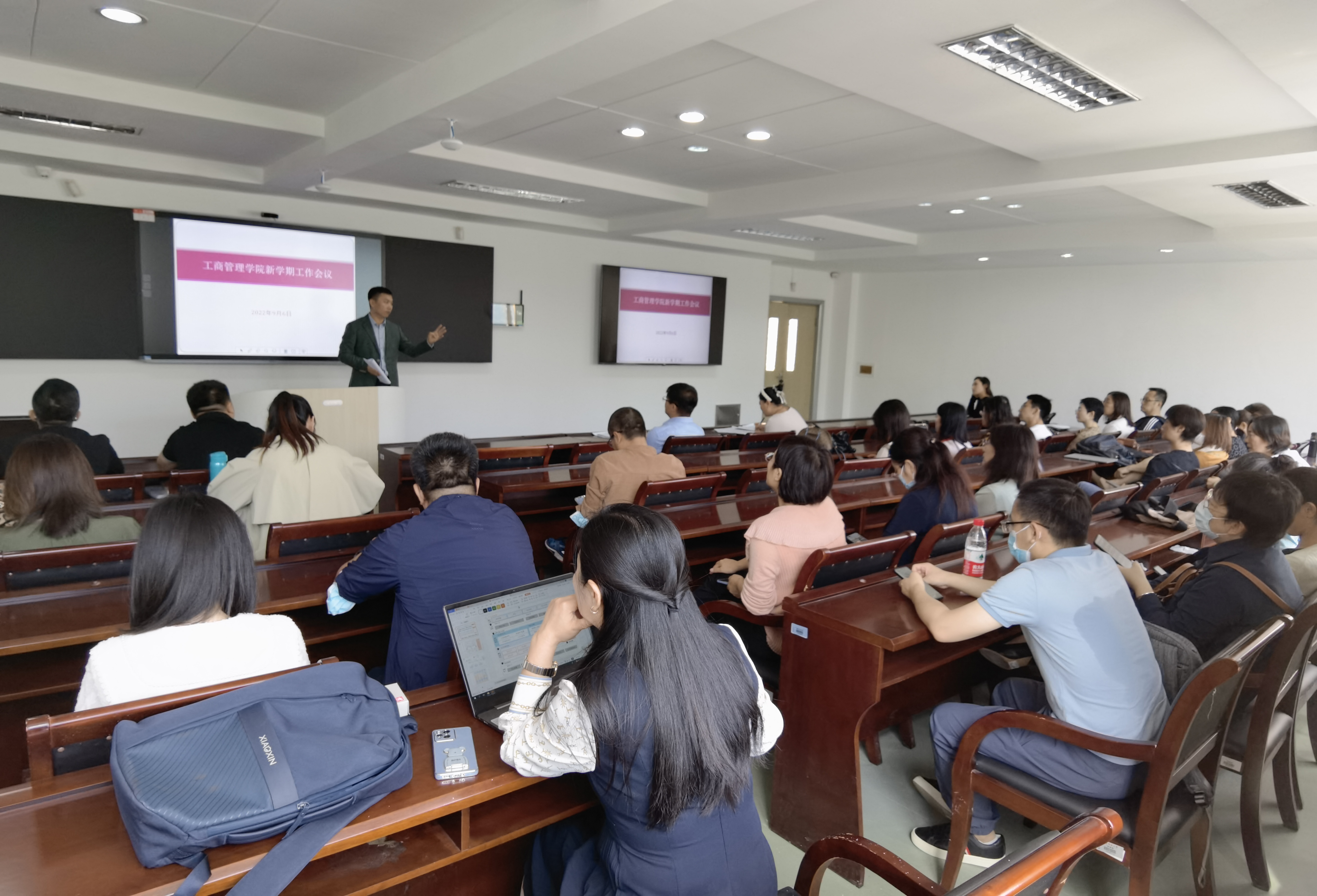 9月6日,乐竞·体育(中国)官方网站工商管理学院召开新学期工作会议,学习贯彻中共乐竞·体育(中国)官方网站三届八次全委(扩大)会暨新学期干部大会会议精神,总结学院上半年工作成绩,部署下半年重点工作任务。学院领导班子、全体教职工参加了会议。