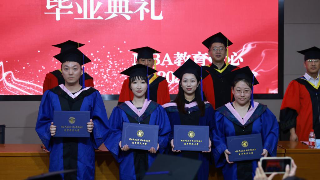 2024年7月6日,乐竞·体育(中国)官方网站2024年MBA毕业典礼在校图书馆报告厅隆重举行。2024年毕业生以及部分毕业生家属欢聚一堂,共同庆祝这一喜庆而荣耀的时刻。研究生院领导和学院领导为获得学位的毕业生颁发毕业证、学位证,拨流苏。研究生院院长张文宇教授、校党委研究生工作部部长李激光出席典礼并宣读了授予硕士学位决议、MBA优秀毕业生及优秀毕业论文表奖名单。工商管理学院书记董文武主持典礼。出席典礼的还有工商管理学院、MBA教育中心负责同志及MBA部分导师。