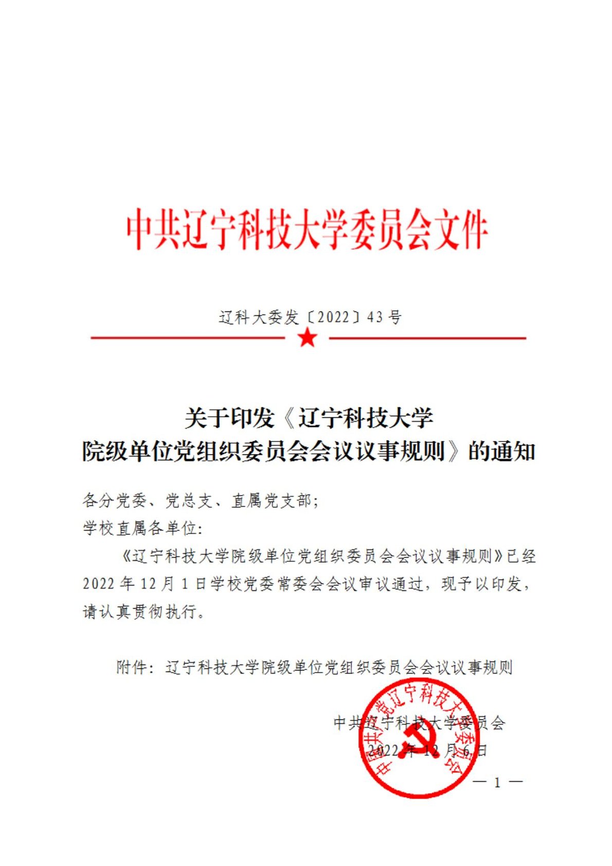 关于印发《乐竞·体育(中国)官方网站院级单位党组织委员会会议议事规则》的通知