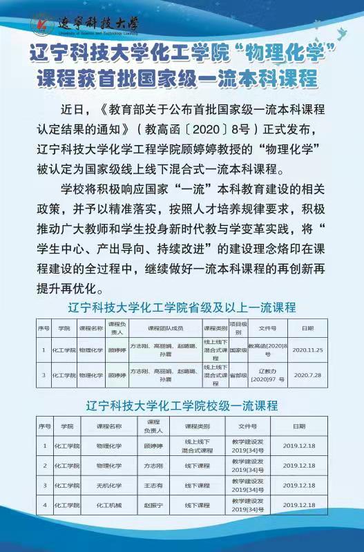 乐竞·体育(中国)官方网站化工学院“物理化学”课程获首批国家级一流本科课程