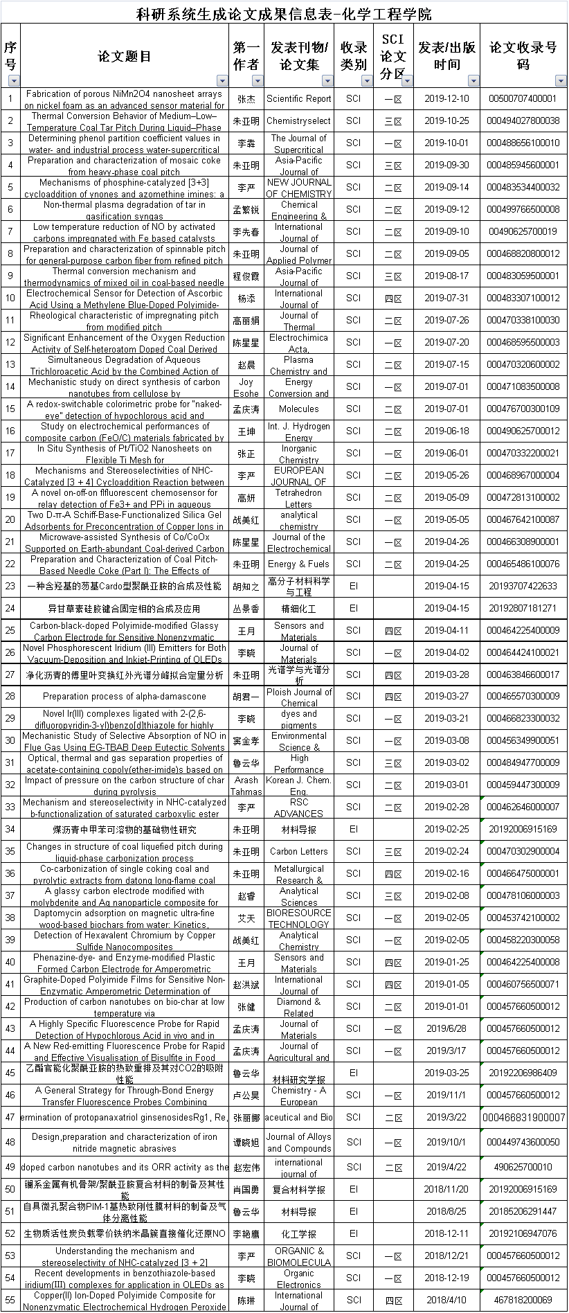 2019年化学工程学院检索论文汇总