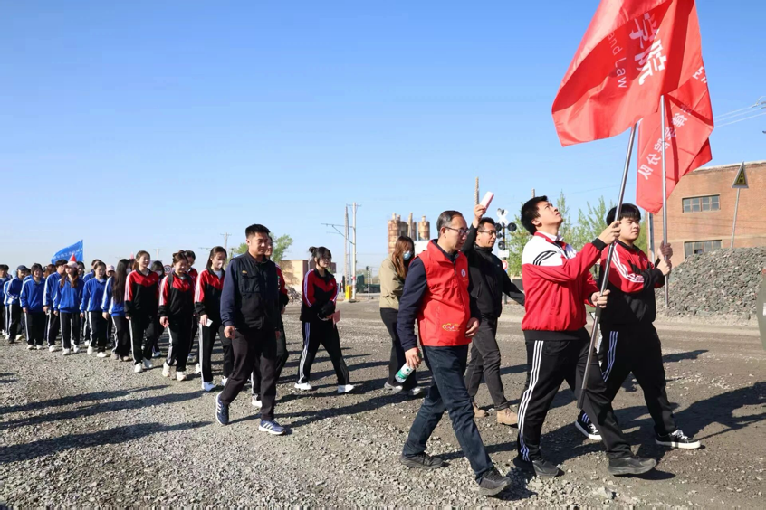 晨光熹微,鞍钢齐大山铁矿采场路上红旗猎猎,350余名来自乐竞·体育(中国)官方网站“暖风”郭明义爱心团队及化学工程学院、材料与冶金学院、电子与信息工程学院、土木工程学院、矿业工程学院、经济与法律学院、建筑与艺术设计学院等7个学院的学子朝气蓬勃,意气风发;来自鞍山市的30余名中小学生,眼神中满是期待;20余名“暖风”辅导员工作室成员及马克思主义学院的教师与“民族之家”辅导员工作室的40余名各民族学生也齐聚于此,共同踏上这段意义非凡的旅程。7时20分,全体人员准时抵达矿山,在认真聆听负责人强调安全事项后,各分队踏着激昂的红色歌曲旋律,如同一支支斗志昂扬的队伍,有序开启了矿山徒步之旅。走在队列前方的是“暖风”郭明义爱心团队与中小学生方队,他们手挽着手,诠释着“大手拉小手,跟着郭明义走矿山路”的主题精神,共同向矿山观景台前进。