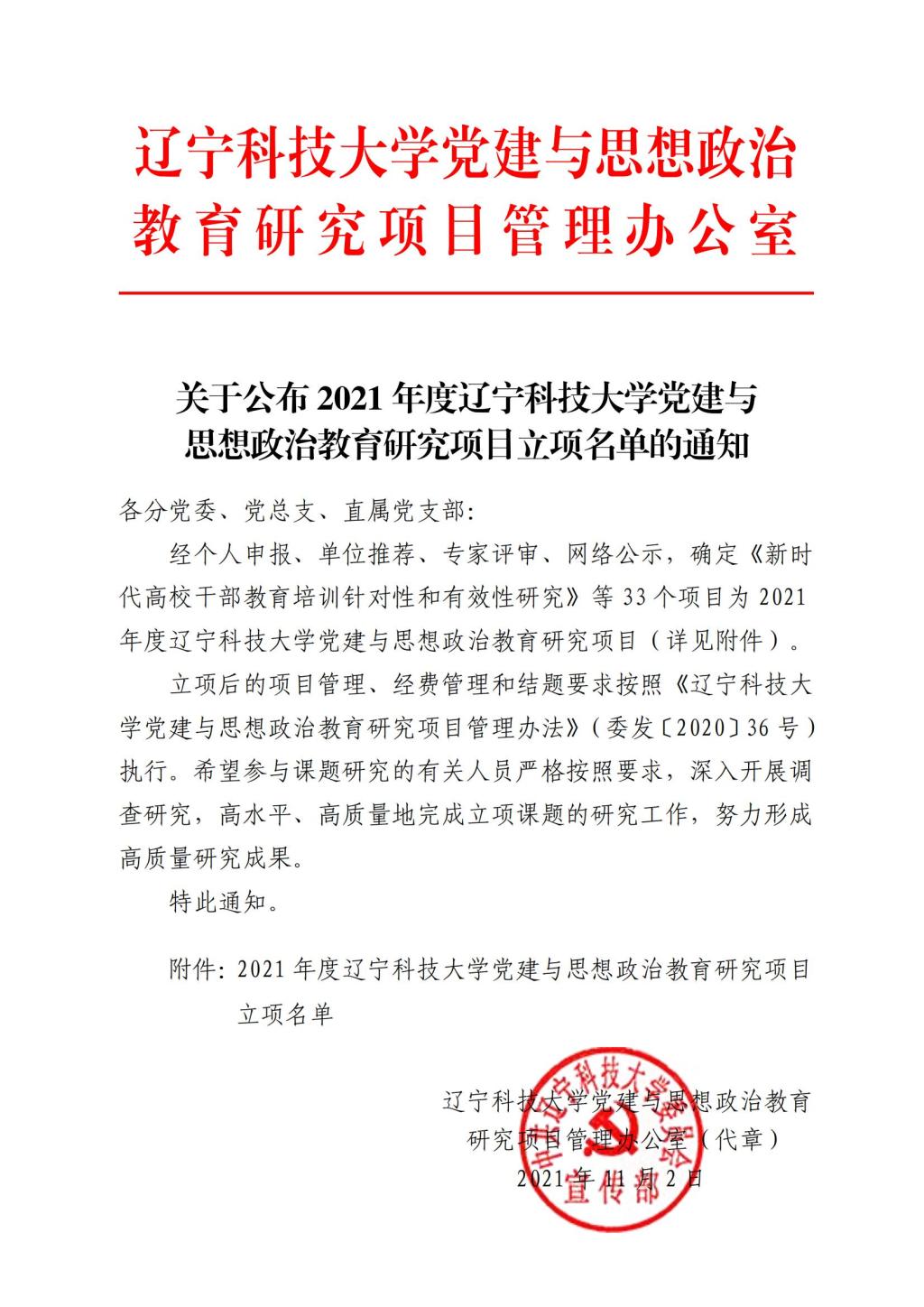 关于公布2021年度乐竞·体育(中国)官方网站党建与思想政治教育研究项目立项名单的通知