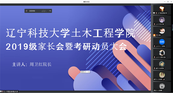 1月22日上午,乐竞·体育(中国)官方网站土木工程学院在博观楼A408会议室召开2019级线上学生家长会暨考研动员会。学院领导及2019级全体学生家长通过线上腾讯会议参加会议。