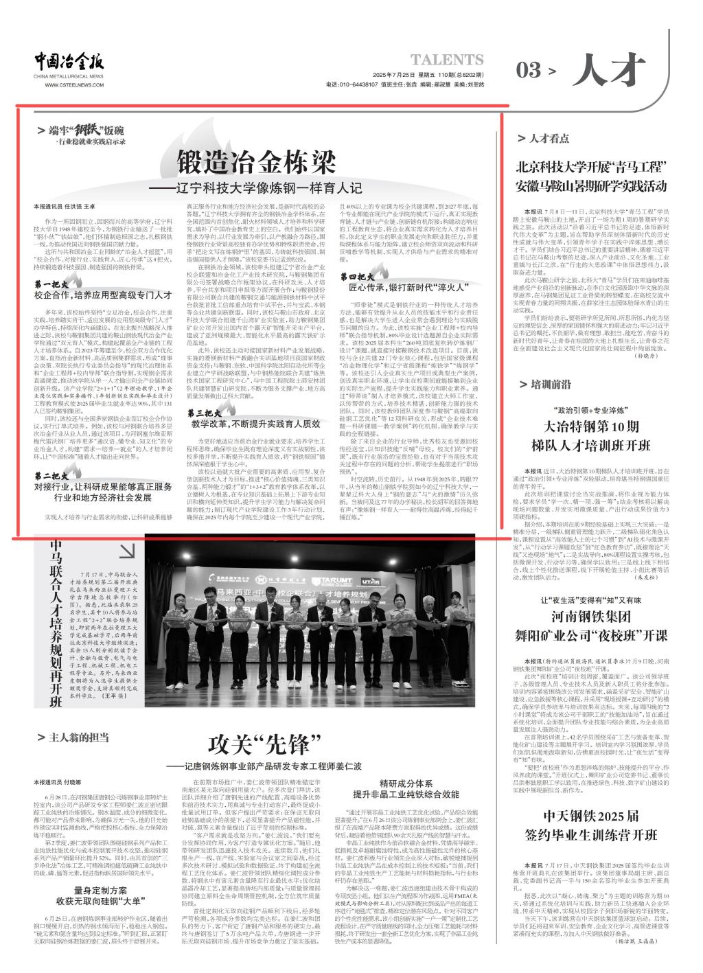 中国冶金报——锻造钢铁栋梁——乐竞·体育(中国)官方网站像炼钢一样育人记