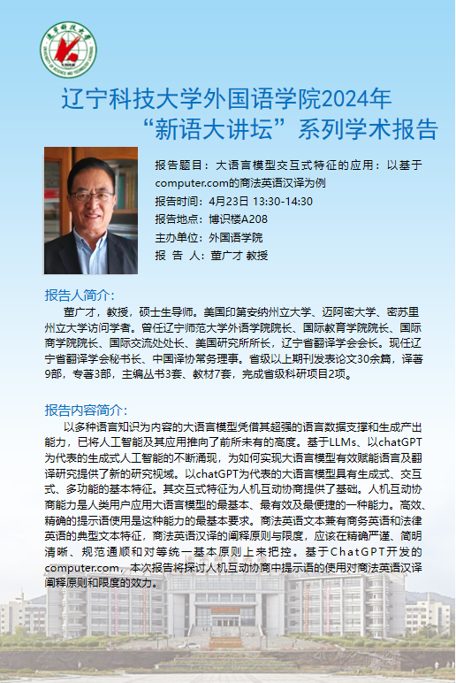 学术预告:大语言模型交互式特征的应用:以基于computer.com的商法英语汉译为例