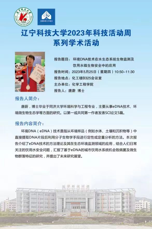 【科技活动周学术预告】环境DNA技术在水生态系统生物监测及饮用水微生物安全中的应用