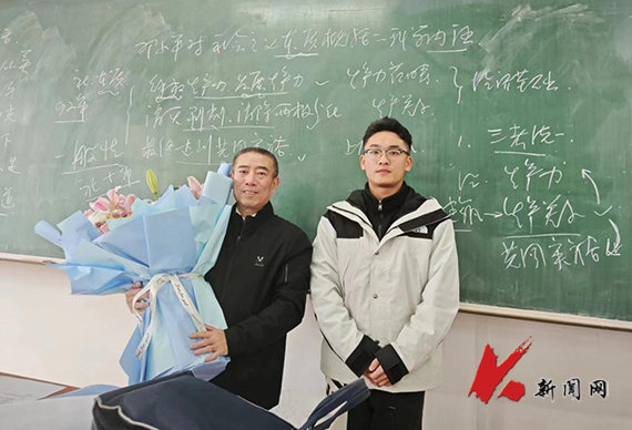 课堂上,李世隆声情并茂地讲解了“邓小平对社会主义本质概括的科学内涵”一课,学院教师与学生共同聆听学习。课后,学生向李世隆献花,课代表李涛代表同学们发言,向李世隆表达敬意和祝福。李世隆表达了对讲台的不舍和对全体师生的感谢,并结合个人心路历程,送给师生24字建议:择业从善、尊重领导、面向阳光、做好当下、惜福知足、善施乐道。