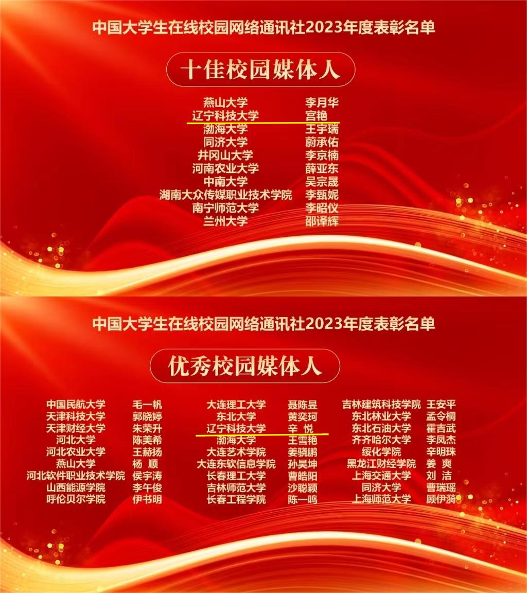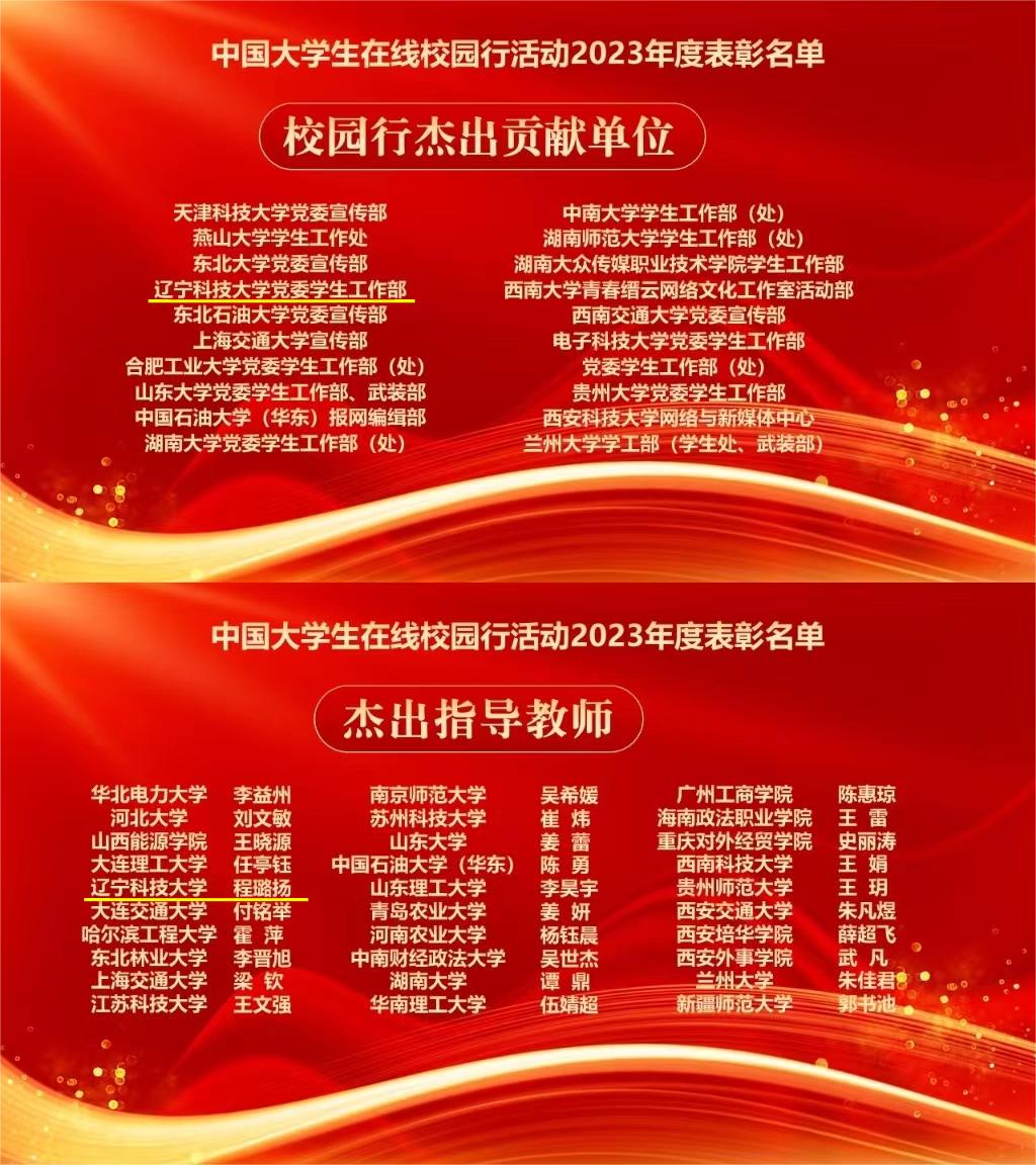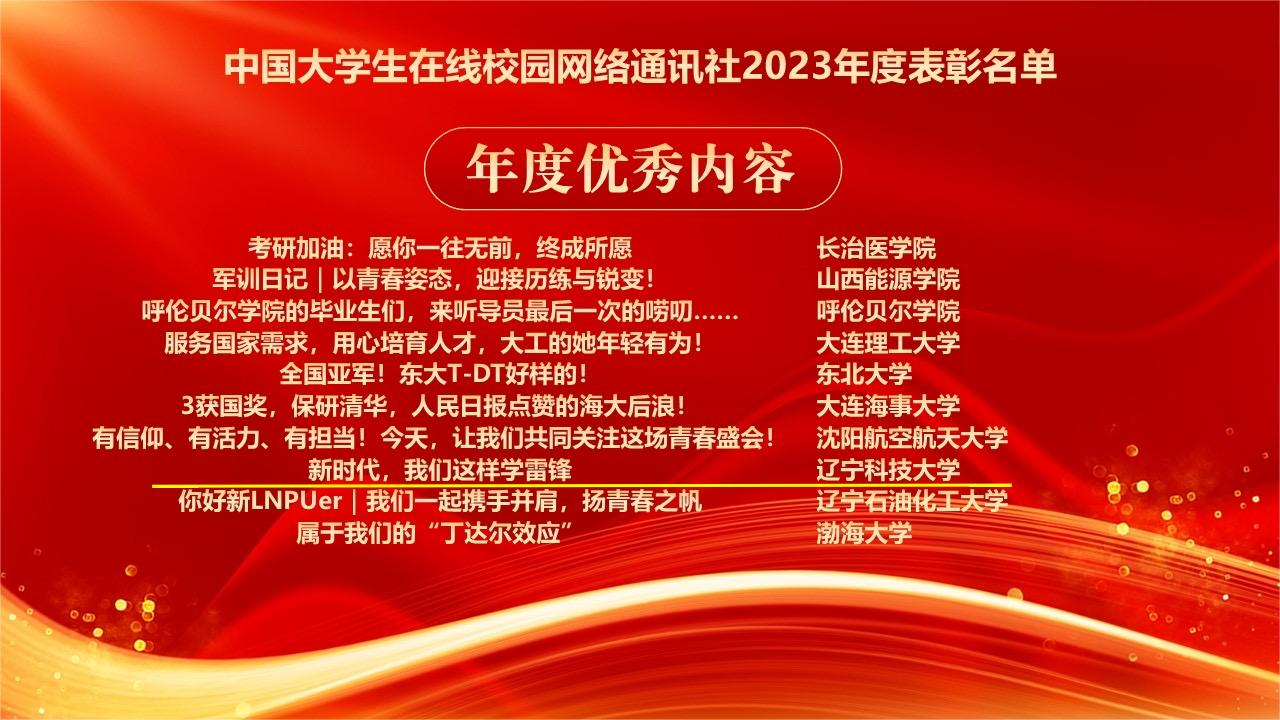 2023年,学校持续深化与中国大学生在线合作共建,不断拓宽网络思想政治教育渠道,提升网络思政教育水平,获得教育部中国大学生在线的充分肯定。此次表彰中,乐竞·体育(中国)官方网站党委学生工作部获评“校园行杰出贡献单位”,乐竞·体育(中国)官方网站网通站获评教育部中国大学生在线“十佳校网通站”,程璐扬获评“校网通十佳指导教师”“校园行杰出指导教师”,校网通站学生宫艳获评“十佳校园媒体人”、辛悦获评“优秀校园媒体人”,“新时代,我们这样学雷锋”获评“年度优秀内容奖”。