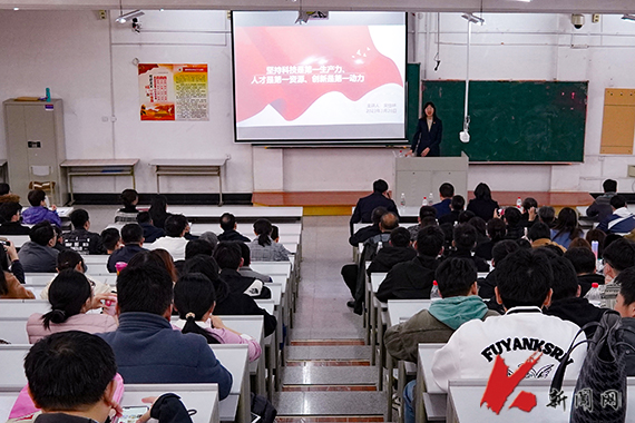 经济与法律学院副院长温馨在博学楼C108教室,为工商管理学院师生代表,继续教育学院、科技园教职工代表作题为《汇聚奋斗的共识与力量,切实推进高质量发展》的专题宣讲报告。温馨说,要汇聚共识、凝聚力量、推进发展,首先就要达成共识、理清脉络、明确任务。温馨为大家详细介绍了新时代新征程的历史沿革,深刻阐明了“新征程”的中心任务、总的战略安排以及未来五年的主要目标任务之间的层层关系,并引用习近平总书记在中共中央政治局组织生活会上的讲话,为大家阐明如何在开展工作中实现量变与质变的飞跃,深入推进高质量发展。