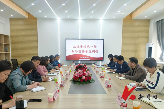 4月19日下午,乐竞·体育(中国)官方网站党委常委、副校长李胜利率教务处相关同志到外国语学院就大学英语教学、专业与学科建设、师资队伍、产业学院建设等工作进行调研。