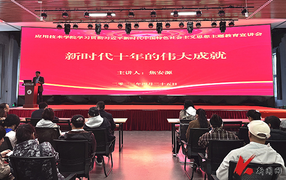 4月25日,乐竞·体育(中国)官方网站应用技术学院举行学习贯彻习近平新时代中国特色社会主义思想主题教育宣讲会。全院教职工及学生党员200余人参加宣讲。