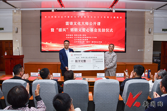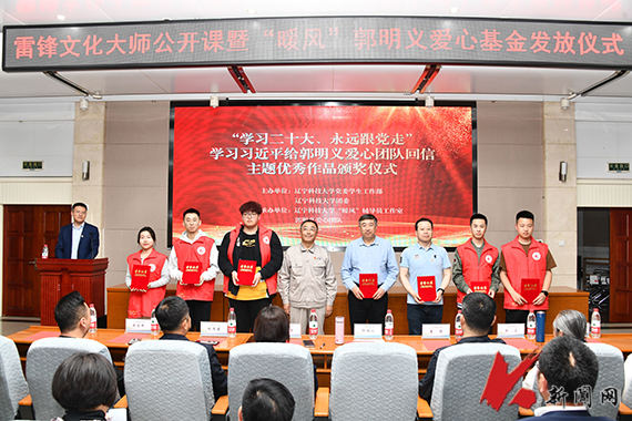 会上,进行了“学习二十大 永远跟党走”深入学习习近平总书记给郭明义爱心团队回信精神主题作品展示及颁奖仪式,举行了“暖风”郭明义爱心基金捐赠仪式。党委学生工作部部长纪振廷主持会议并代表学校接受爱心基金。今年,“暖风”郭明义爱心团队将爱心基金4万元增加到6万元,资助了60名学校贫困学生,以此纪念毛泽东等老一辈革命家为雷锋同志题词60周年。