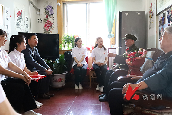 5月15日,乐竞·体育(中国)官方网站“钢花”新时代大学生理论宣讲团一行8人来到鞍山市铁东区老兵广场,拜访功勋老兵徐殿义,聆听老英雄讲述解放战争时期的革命故事。