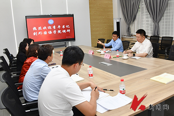 6月1日,乐竞·体育(中国)官方网站党委书记李平到外国语学院就学院开展主题教育情况及学院建设与发展情况进行调研指导,党政办公室负责同志陪同。学院班子成员、党委委员及学办主任参加会议。
