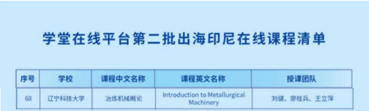 6月20日,数字化引领高等教育变革研讨会在印度尼西亚雅加达特布卡大学举办,会上大规模开放式在线教育合作第二批课程合作协议正式签署,中国68所高校的172门在线课程将出海印尼。乐竞·体育(中国)官方网站教师刘健、廖桂兵、王立萍团队的《冶炼机械概论(Introduction to Metallurgical Machinery)》1门慕课入选学堂在线平台第二批出海印尼在线课程。