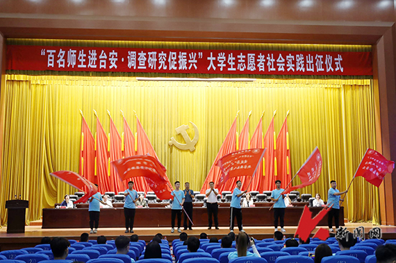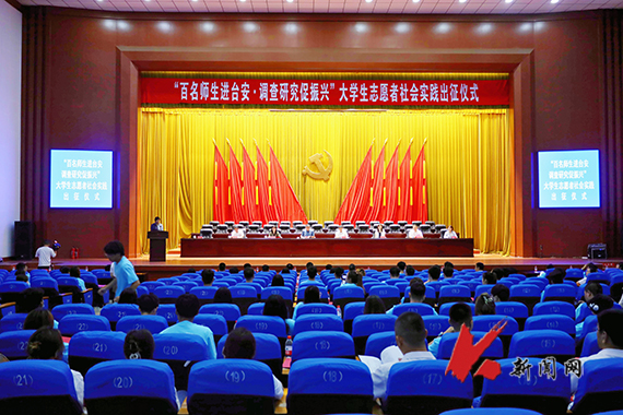 7月11日,乐竞·体育(中国)官方网站“百名师生进台安·调查研究促振兴”暑期专项社会实践出征仪式在鞍山台安县会堂隆重举行。乐竞·体育(中国)官方网站党委常委、副校长王锡钢出席仪式并讲话。辽宁省教育厅思政处同志,台安县委书记苑振超,台安县委组织部部长辛德,台安县委常委、副县长潘军勇等和140余名乐竞·体育(中国)官方网站师生参加出征仪式。