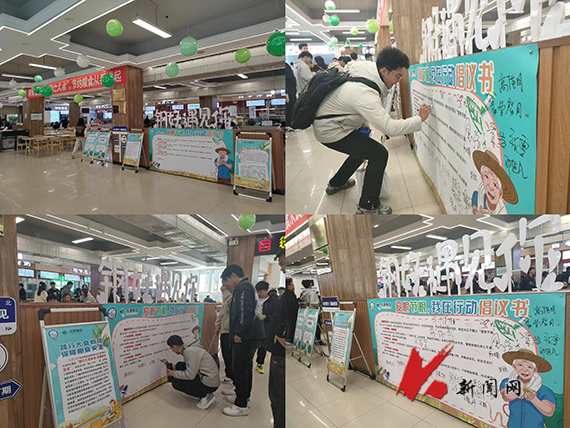 桃园餐厅开展“爱粮节粮,我在行动”倡议书签字活动。同学们踊跃参与,纷纷在签字板上签名留言,承诺要珍惜粮食资源、文明用餐、厉行节约、拒绝浪费。签字现场气氛高涨,同学们纷纷表示,我签名我践行,爱粮节粮从我做起。