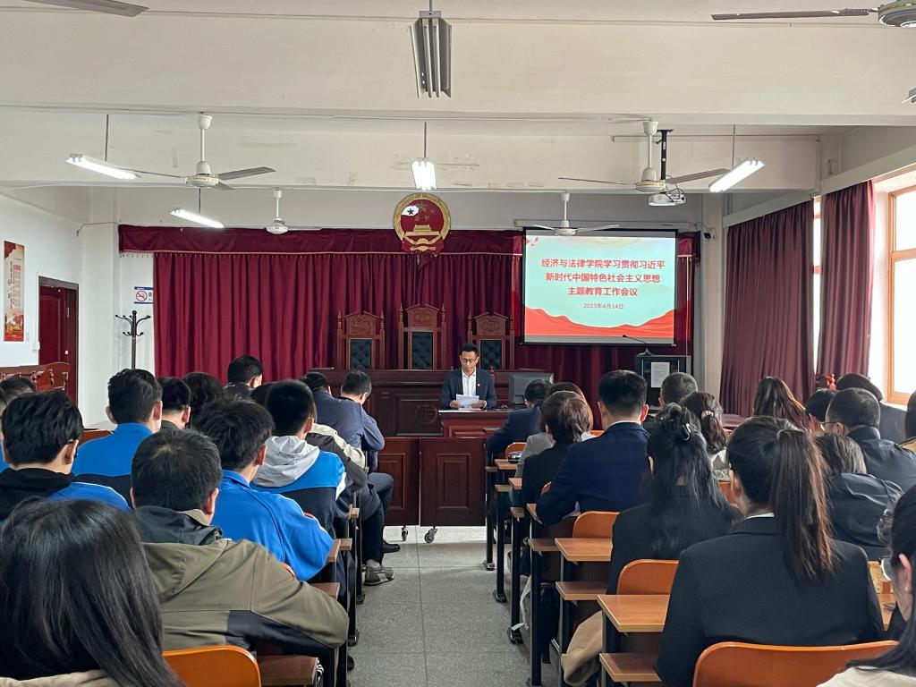 4月14日,乐竞·体育(中国)官方网站经法学院学习贯彻习近平新时代中国特色社会主义思想主题教育工作会议在博识楼A402召开。经法学院党委书记赵智博主持会议并作动员讲话,校党委主题教育推进组第五组组长纪振廷到会指导,经法学院师生党员参加会议。