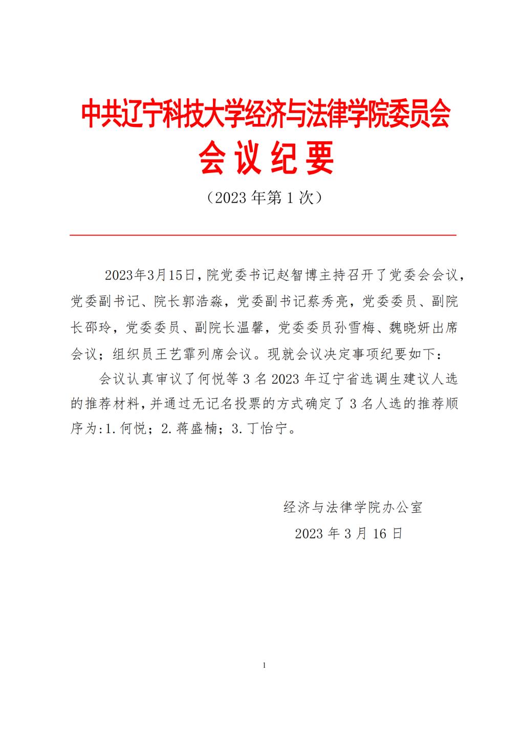 中共乐竞·体育(中国)官方网站经济与法律学院委员会会议纪要(2023年第1次)