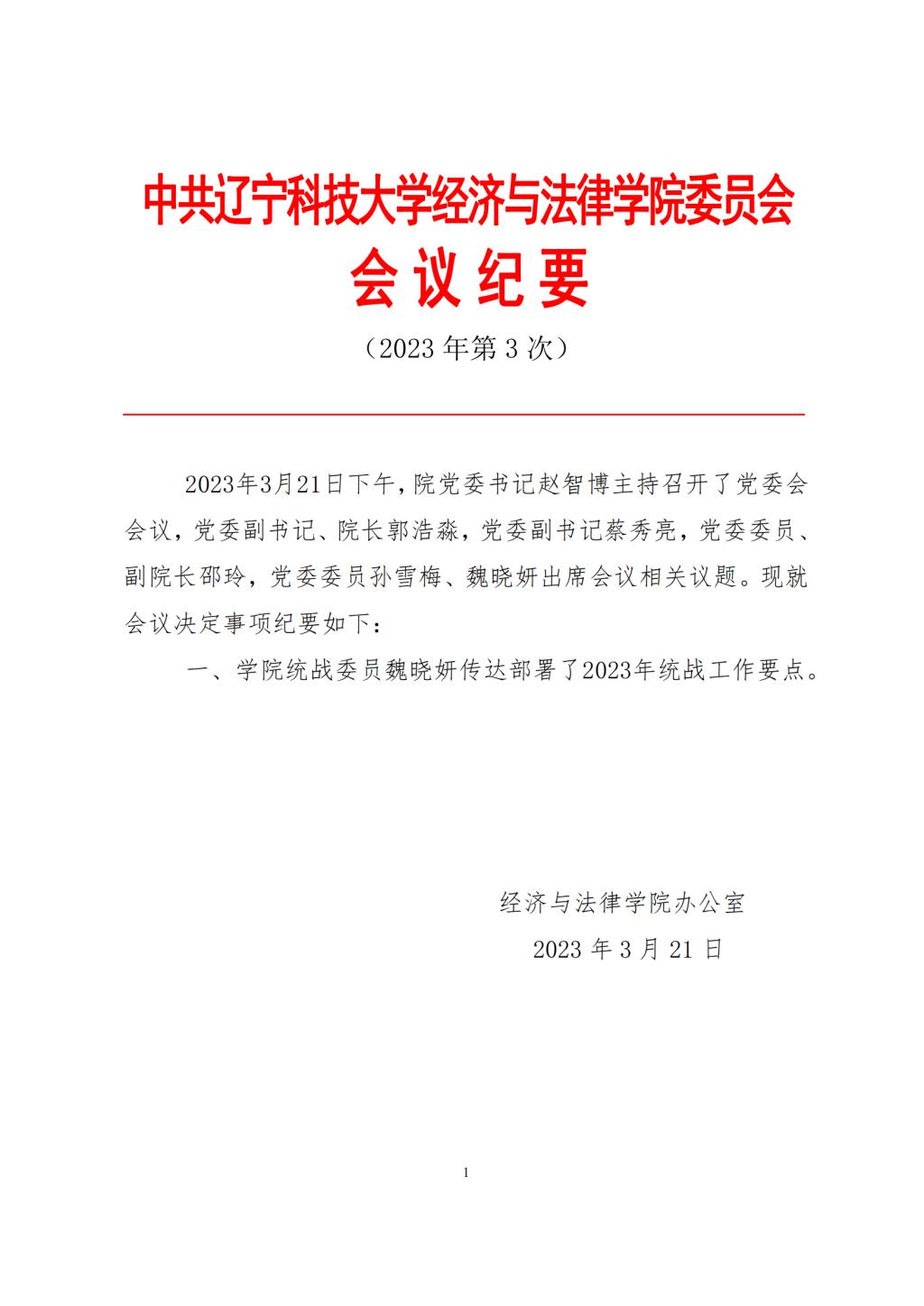 中共乐竞·体育(中国)官方网站经济与法律学院委员会会议纪要(2023年第3次)