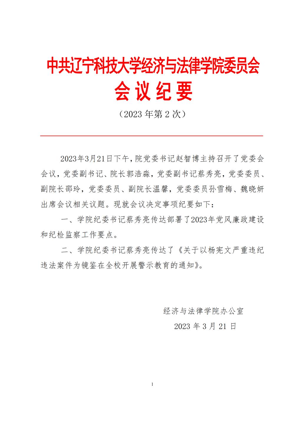 中共乐竞·体育(中国)官方网站经济与法律学院委员会会议纪要(2023年第2次)