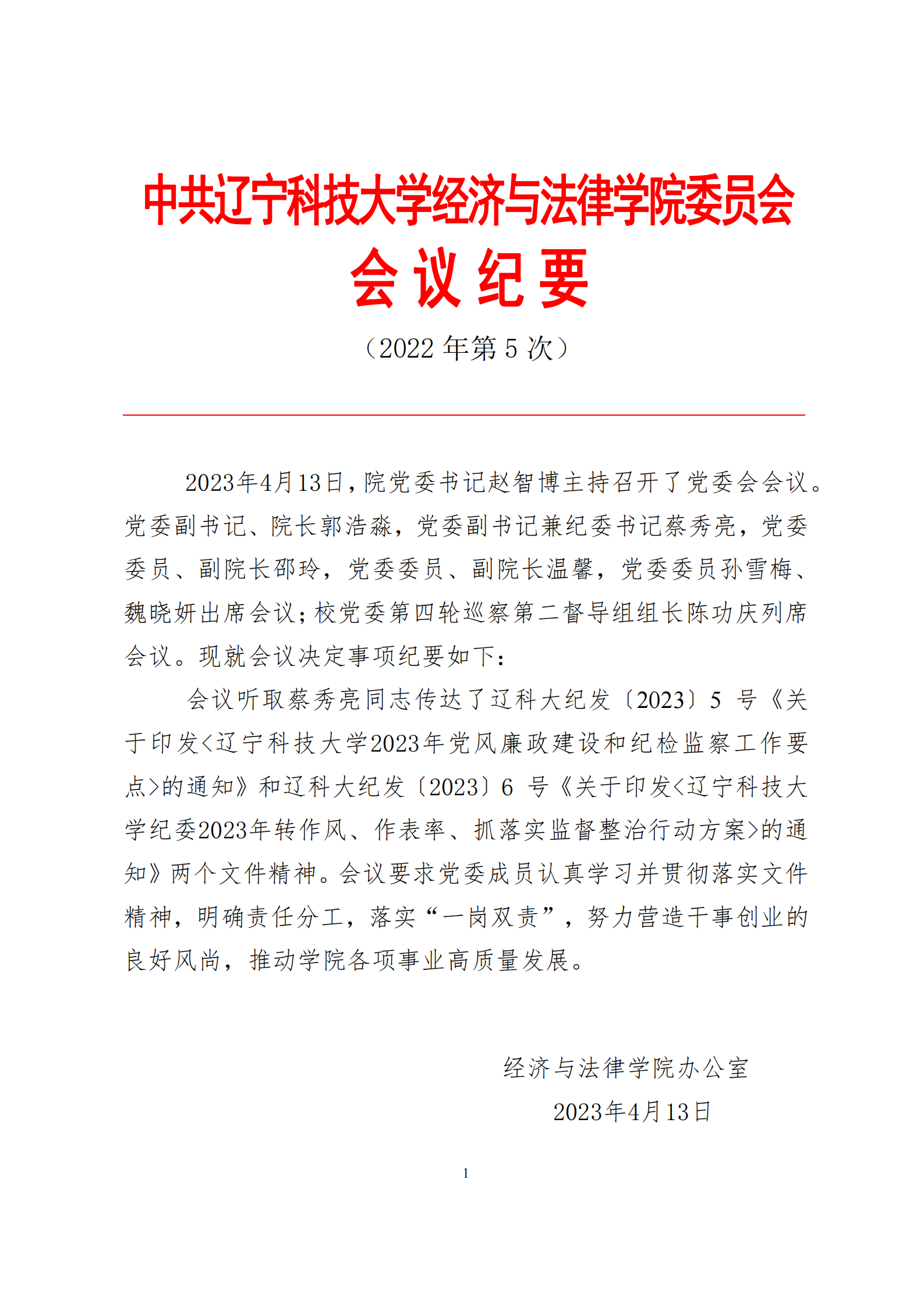 中共乐竞·体育(中国)官方网站经济与法律学院委员会会议纪要(2023年第5次)
