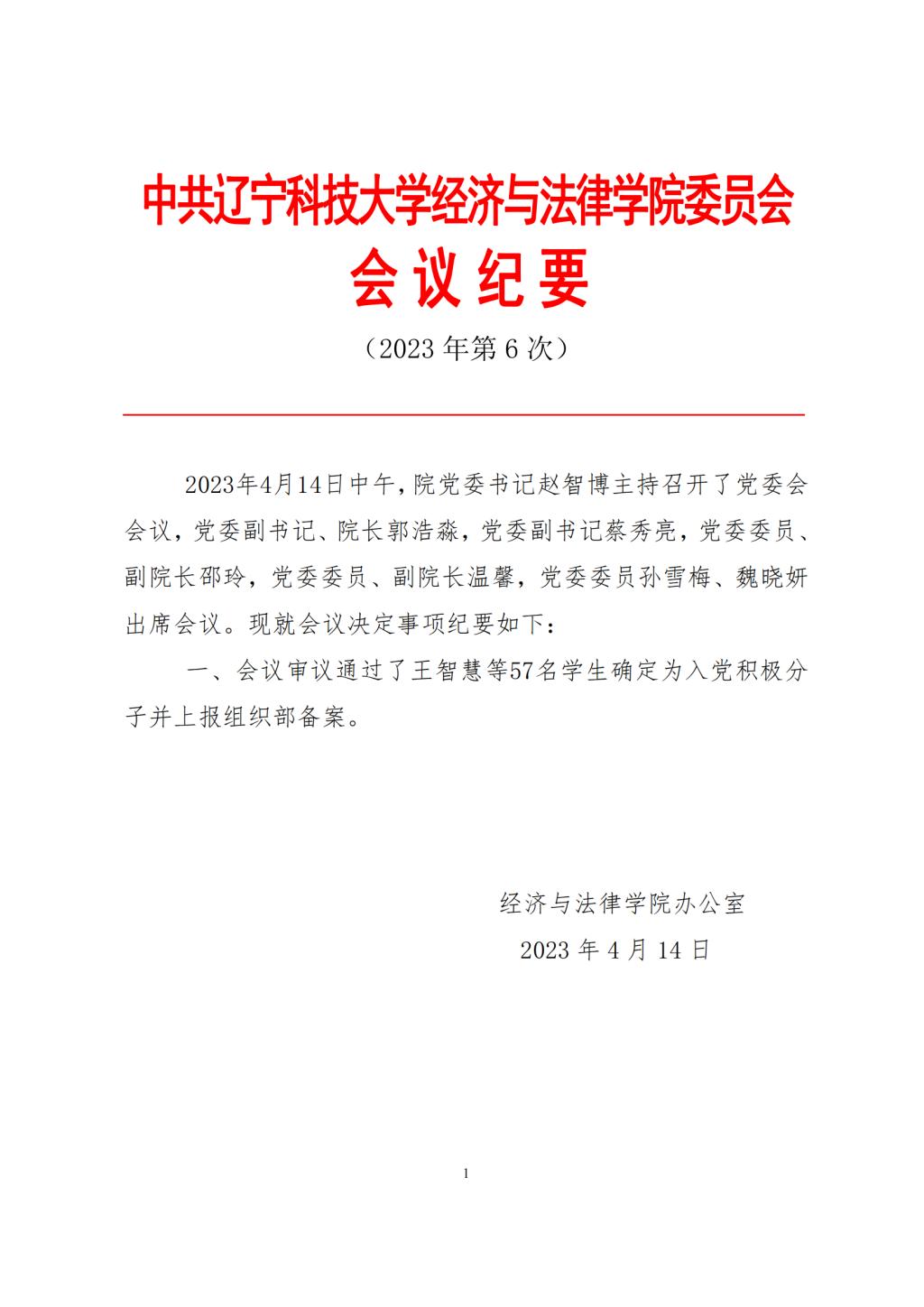中共乐竞·体育(中国)官方网站经济与法律学院委员会会议纪要(2023年第6次)