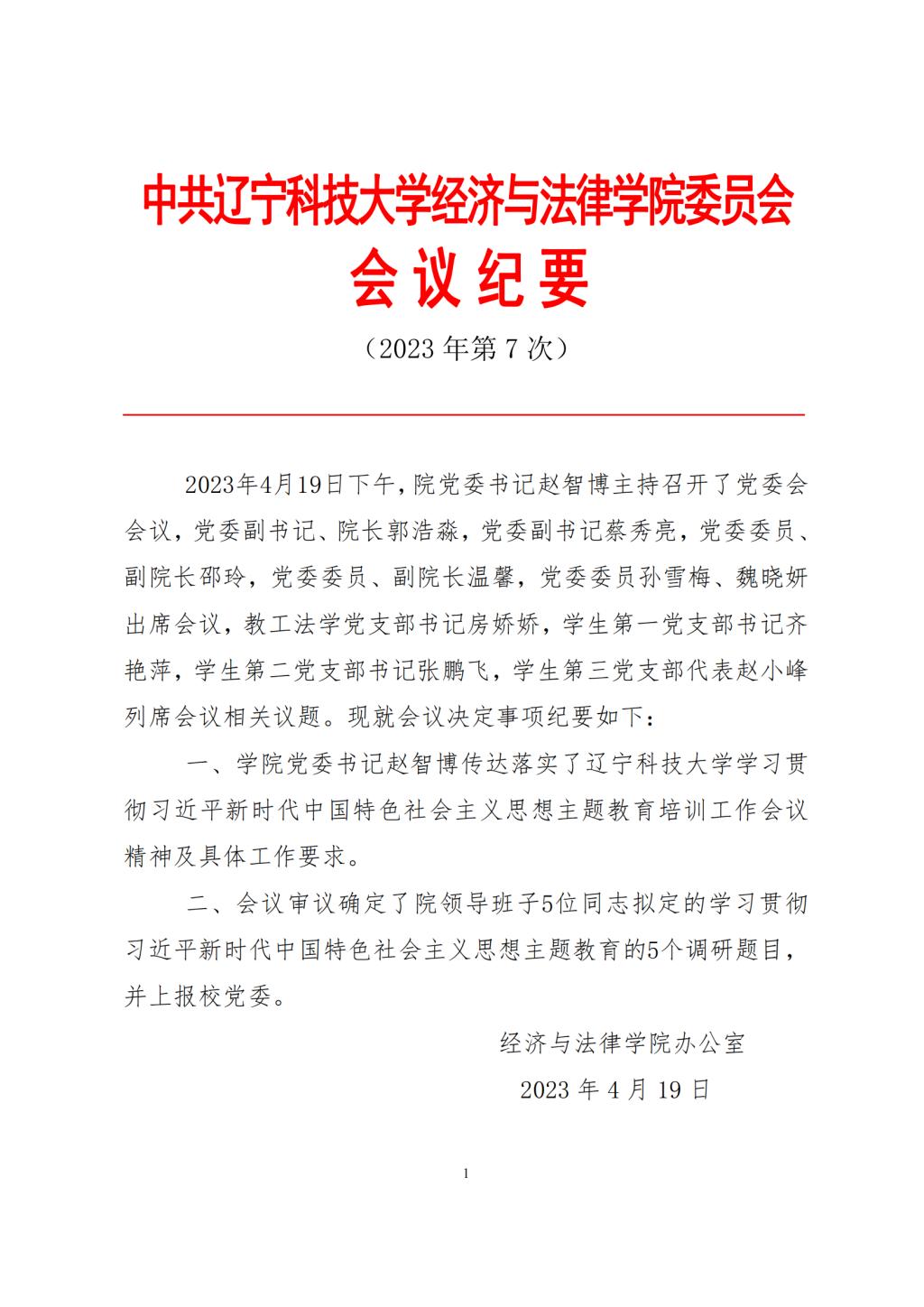 中共乐竞·体育(中国)官方网站经济与法律学院委员会会议纪要(2023年第7次)