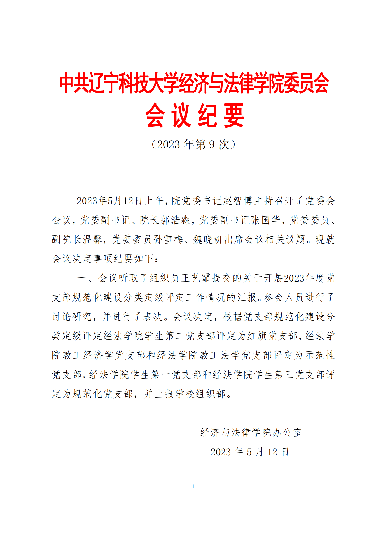 中共乐竞·体育(中国)官方网站经济与法律学院委员会会议纪要(2023年第9次)